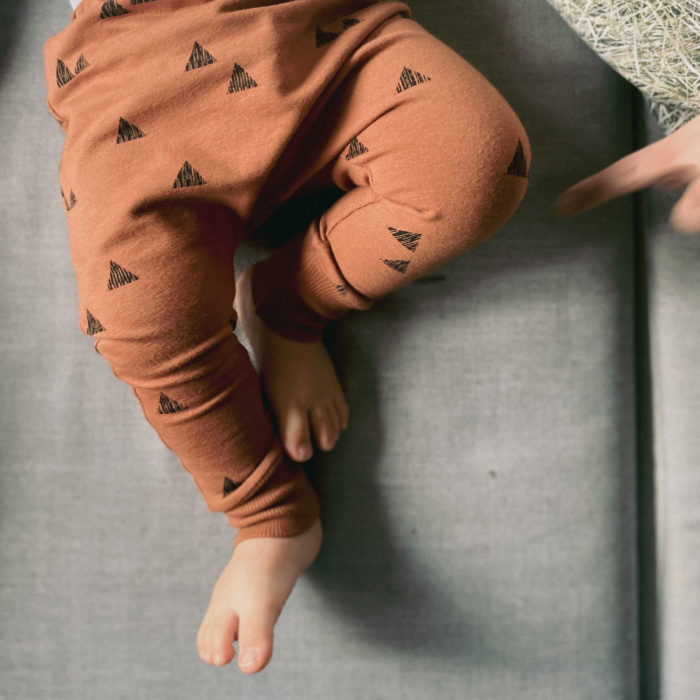 Legíny – klasické úzké kalhoty. Do velikosti 92 zvýšený pas.